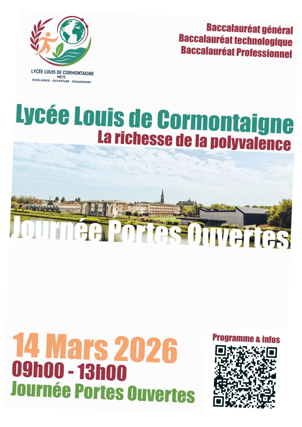 Le Lycée Louis de Cormontaigne a donc une offre de formation variée qui permet tous les parcours. C’est aussi un établissement qui donne ses chances aux élèves, leur apporte une plus-value tout au long de leur scolarité et leur propose une ouverture sur le monde par :